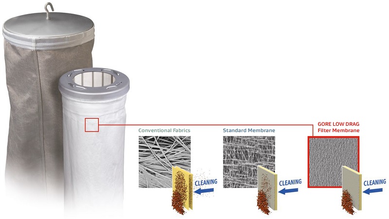 GORE® LOW DRAG 濾袋可以提高風扇能效、增加流量,且因減少清潔而延長了濾袋的使用壽命,提高捕獲效率、減少排放,進而降低總體成本。