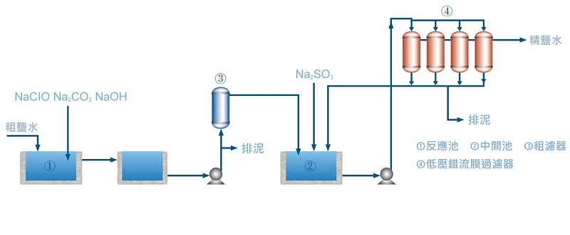 鹽水中氫氧化鎂、有機物直接影響死端過濾的能力和穩定性,必須通過氣浮預處理去除,錯流過濾可避免氫氧化鎂使膜通量迅速衰減,流量穩定